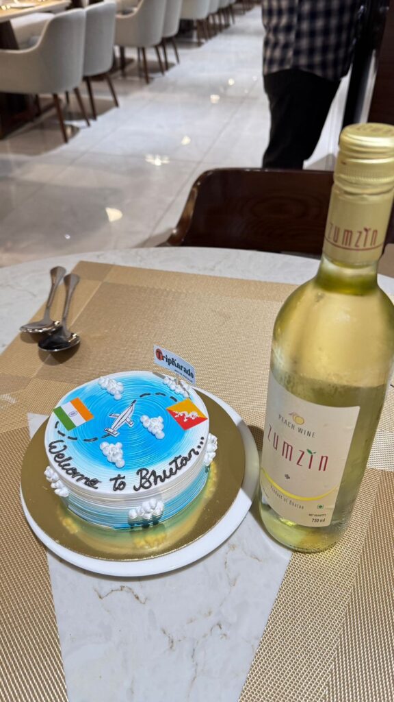 - In the evening, during dinner, we ’ll officially welcome you with a special celebratory cake and offer you a local Bhutanese wine to mark the beginning of this beautiful journey on a joyful note. After dinner, join the group for an entertaining karaoke session at Samsara Club (drinks at the club are not included).